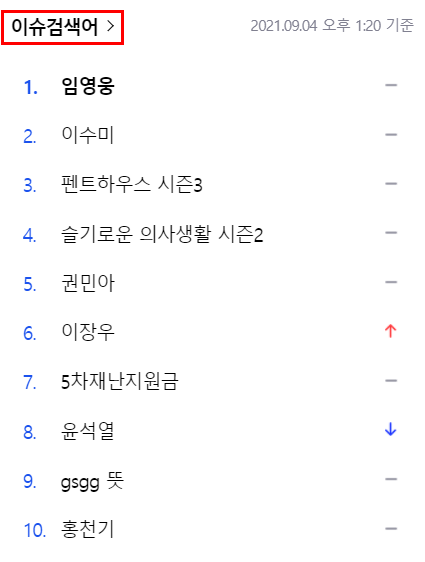 줌 메인 사이트 접속 후 우측 중간에 '이슈검색어'가 있습니다.
