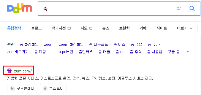 다음이나 네이버, 구글과 같은 포털사이트에서 '줌'을 검색합니다.