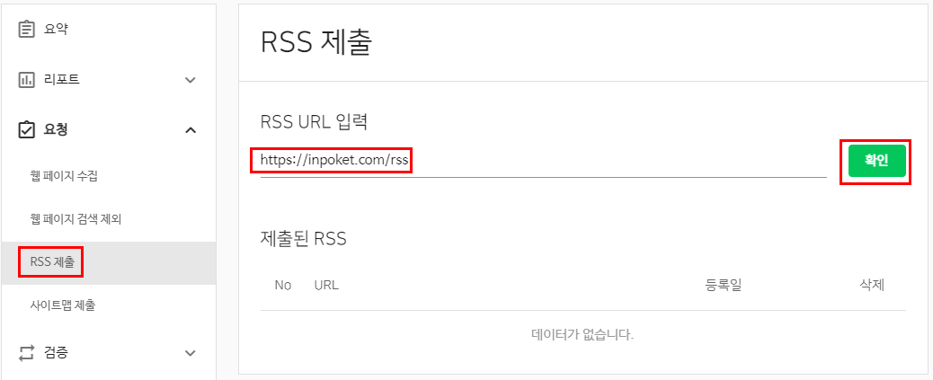 좌측 카테고리에 '요청 - RSS 제출' 로 들어갑니다.