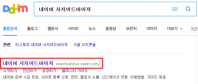 다음이나 네이버, 구글과 같은 포털사이트를 통해 '네이버 서치어드바이저'를 검색합니다.