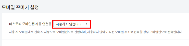 모바일웹 자동 연결 설정은 '사용하지 않습니다' 로 설정하는게 좋습니다.