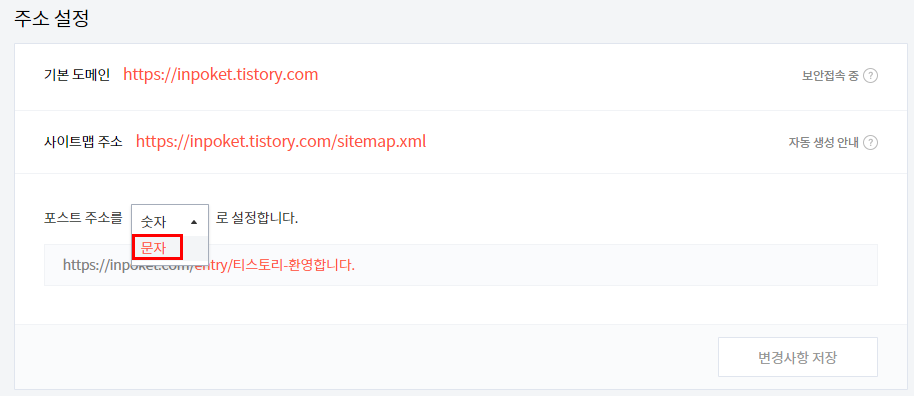 ※ 요약 - 블로그 주소는 문자로 설정하는 것을 추천합니다.